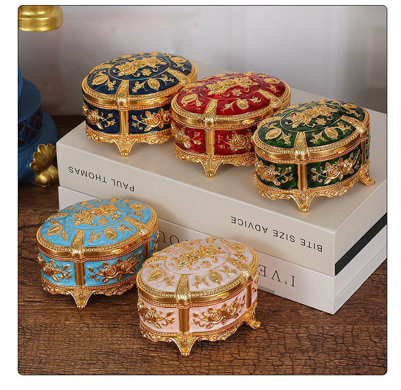 ヨーロッパのバラのアクセサリーの箱の高級なアイデアのレトロな個性の家庭のエナメルの色の化粧台の金属の収納の箱