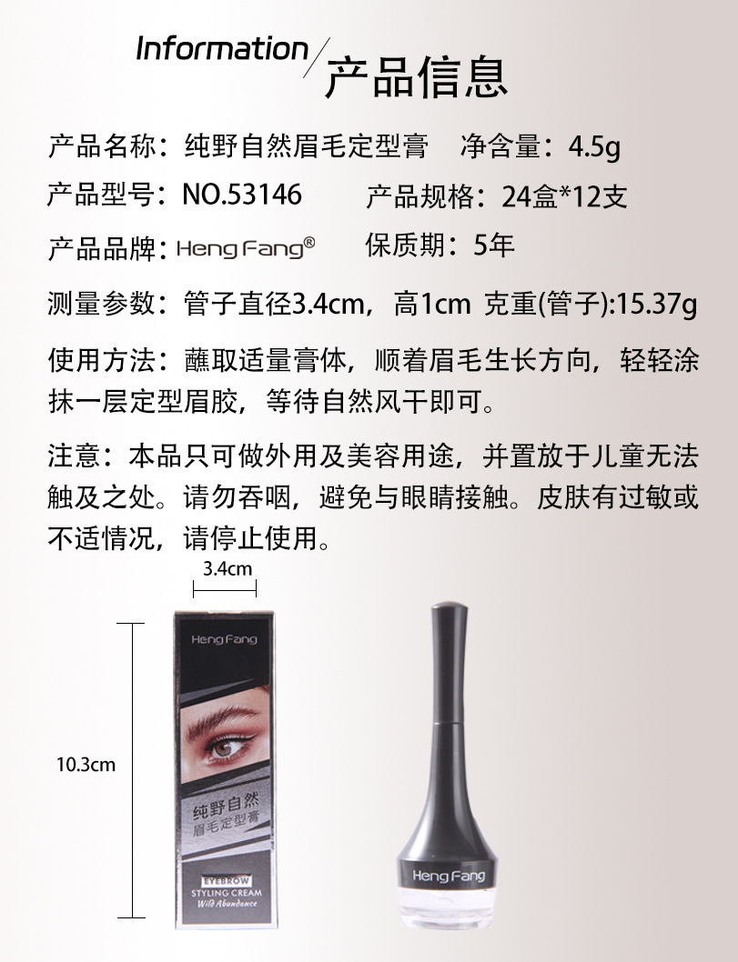 Hengfang Pure Wild Natural Eyebrow Styling Cream 立体的な自然な発色でにじみにくい、初心者や学生向けの手頃な価格のメイクアップ