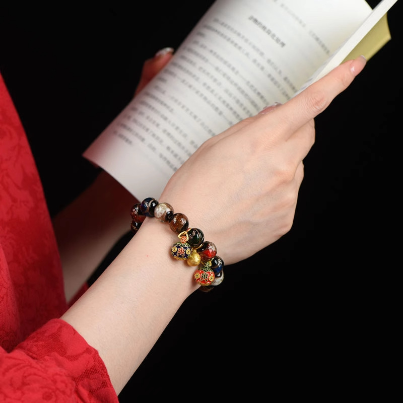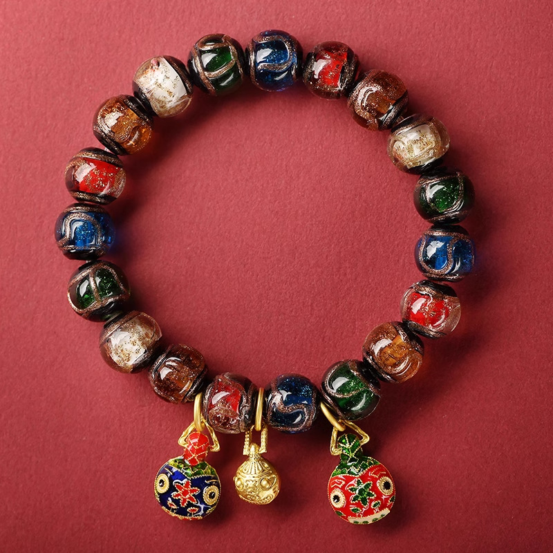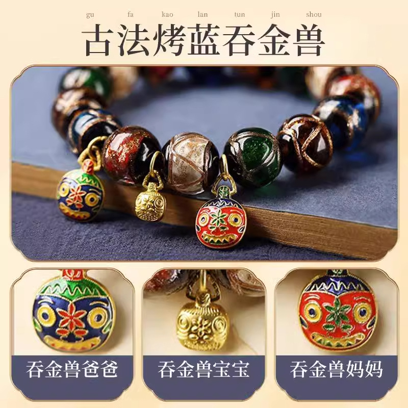 古法香灰瑠璃手串呑み金獣五色男女金DIYブレスレット一家三口エナメル玉