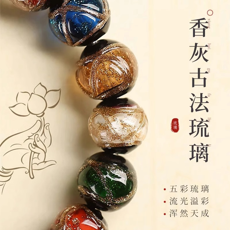 香灰瑠璃手串女男多宝手串散珠子文游古法五色呑金獣瑠璃ブレスレット卸売り