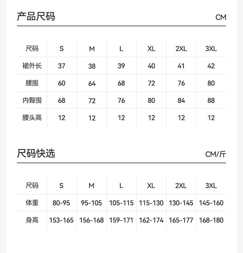 エス (40-47.5kg ),エム (47.5-52.5kg ),エル (52.5-57.5kg ),XL 57.5-65kg,エクスエックスL (65-72.5kg ),エクスエックスエックスL (72.5-80kg )