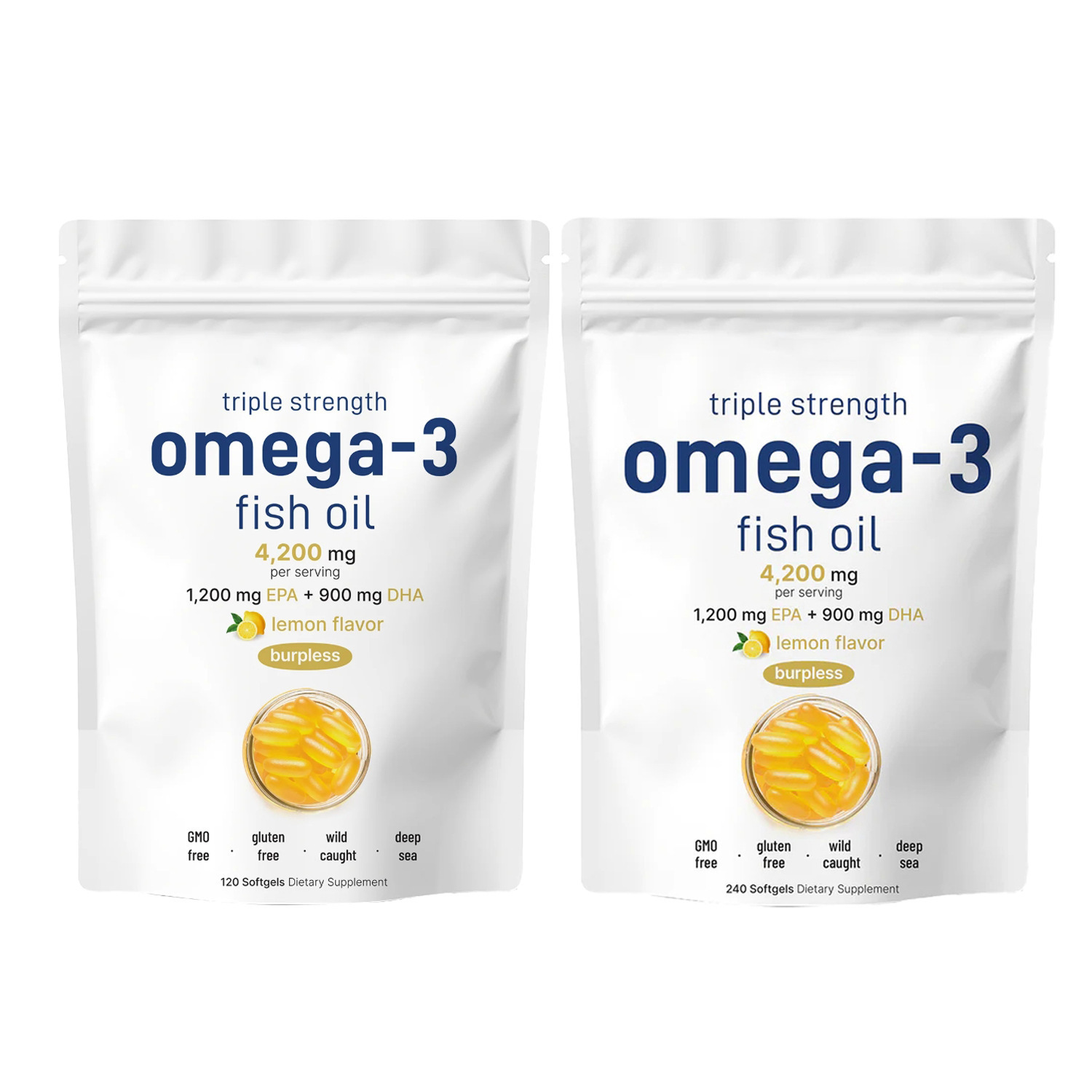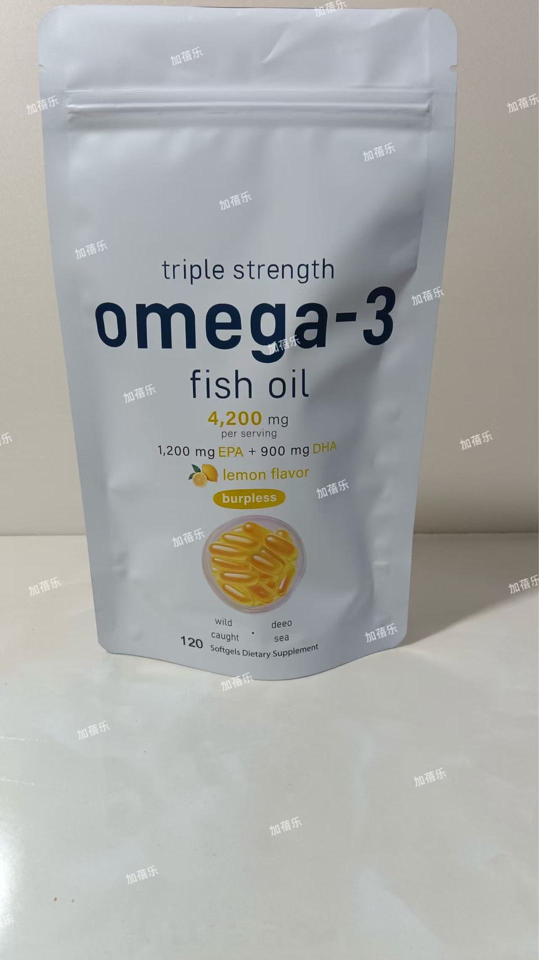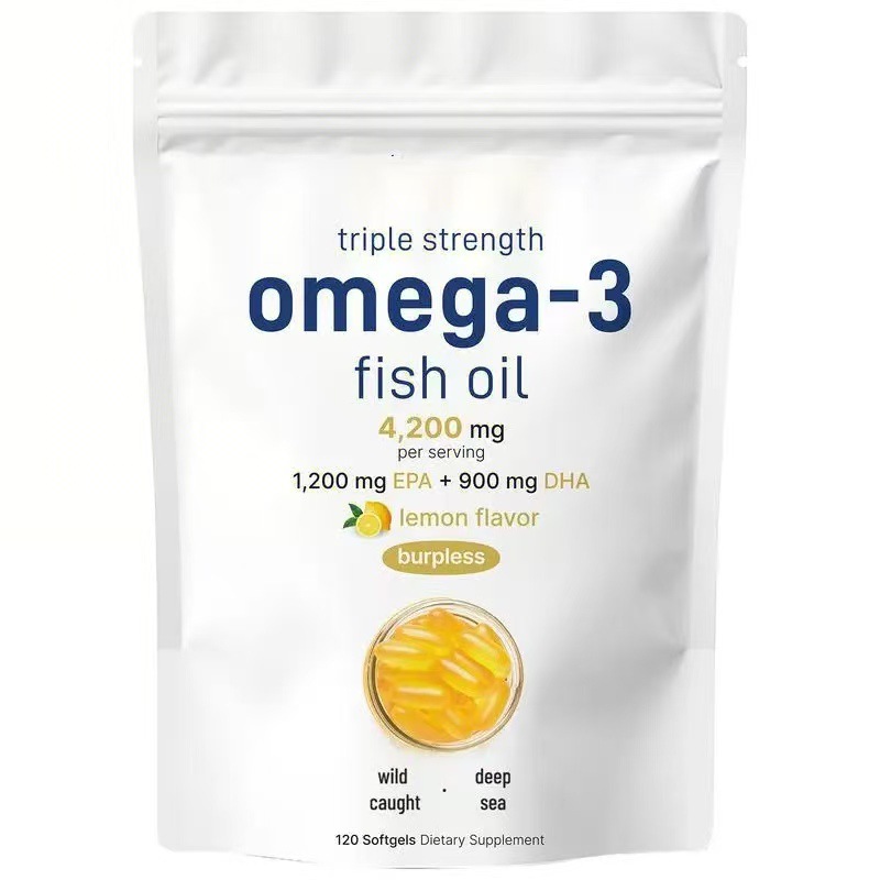 跨境热销 深海鱼油软胶囊Omega 3 lemon flavor欧米伽-3胶囊120粒