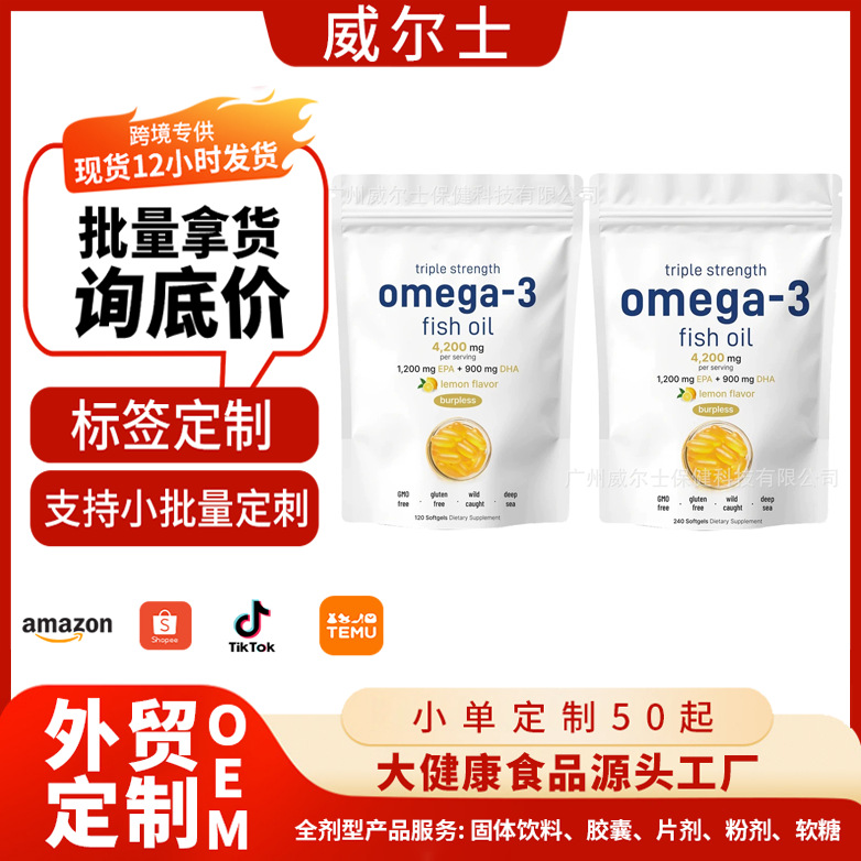 跨境爆款 鱼油胶囊Omega3 FishOil欧米伽鱼油软胶囊源头现货