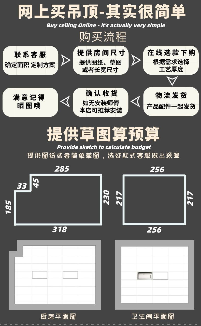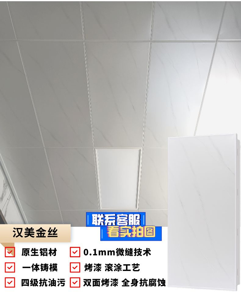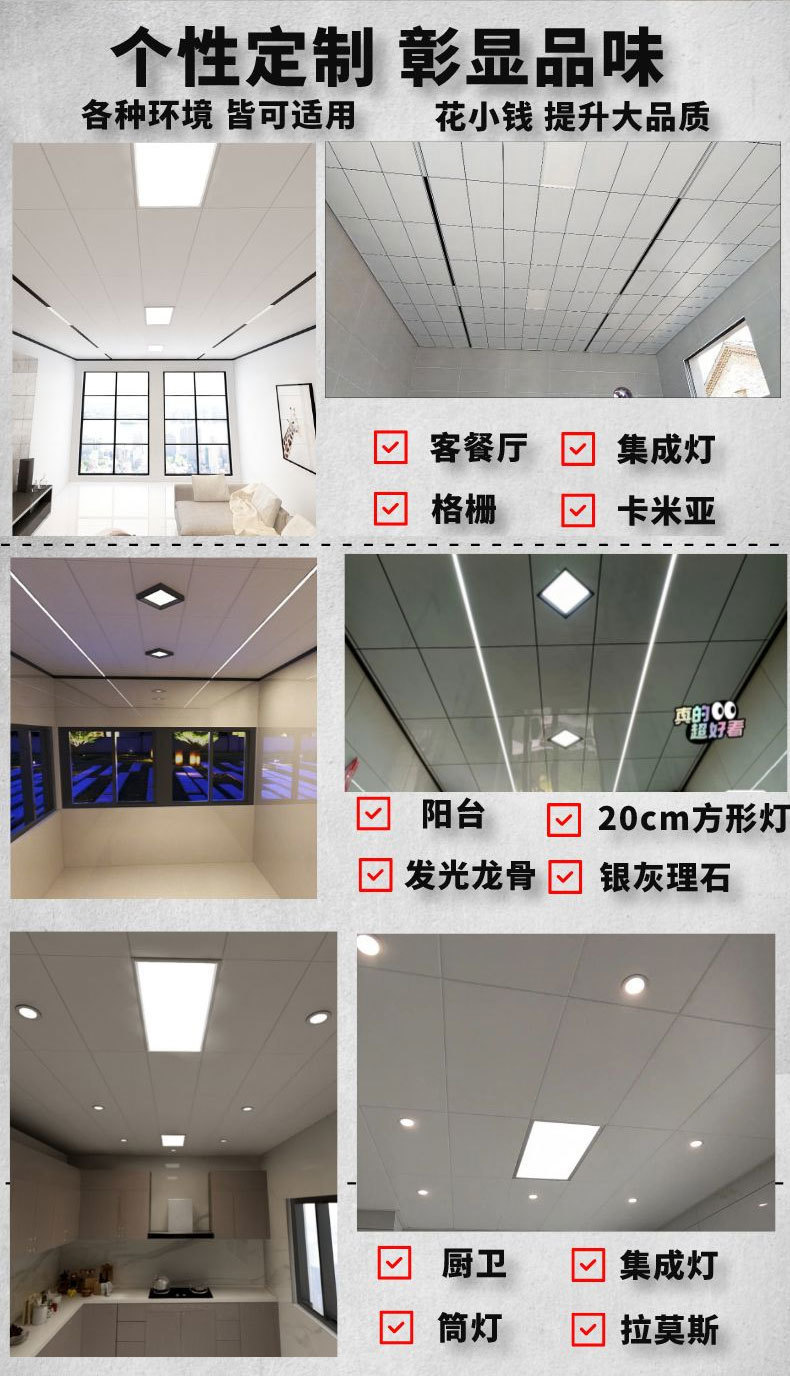 烤漆集成吊顶铝扣板300x600铝天花板厨房卫生间阳台全套材料自装