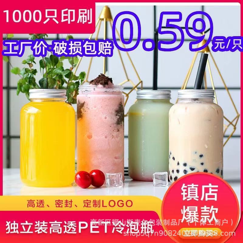 奶茶杯子一次性网红奶茶方瓶大口pet果汁饮料外带塑料杯子胖胖杯