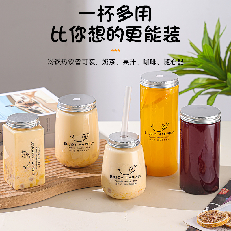 Petミルクティーカップ380ml飲料瓶長方形プラスチックカップネット赤ミルクティーカップコーヒーカップ高颜値汚れカップ
