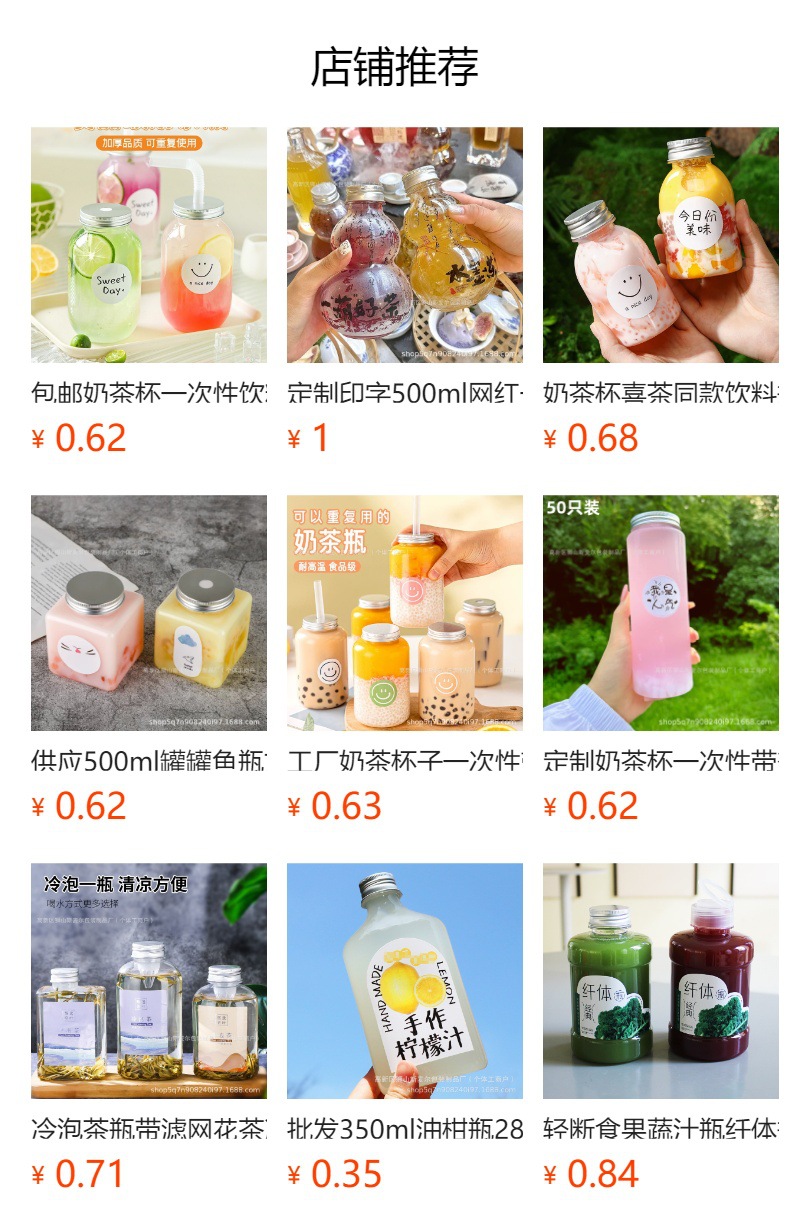 ネットレッドミルクティーカップ使い捨て蓋付き自家製ジュースオレンジジュースカップu型太ったカップ透明飲料ボトル商用