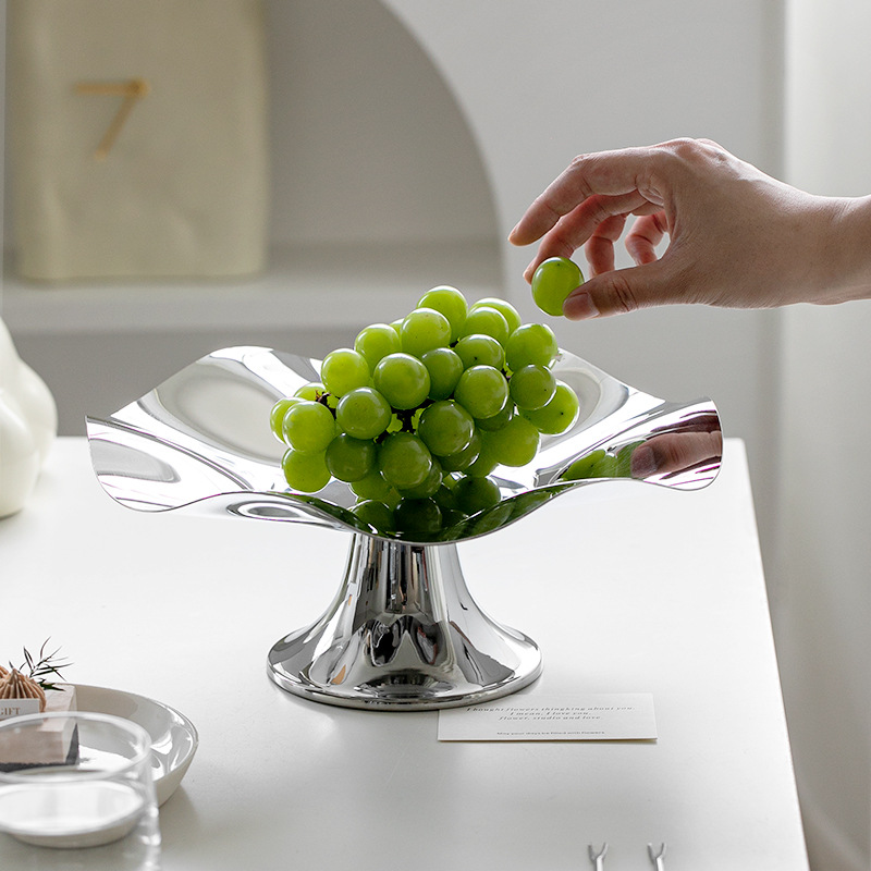 クロスボーダーのステンレスの果物の皿の創意の果物の皿のシンプルで軽い豪華な客間のお茶のいくつかの装飾の高い足の果物の皿のキャンディー