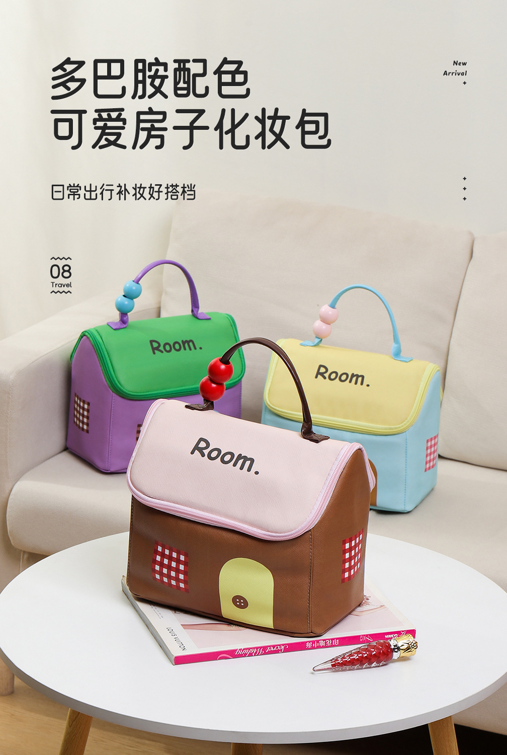 多巴胺房子化妆包大容量便携旅行手提包可爱卡通洗漱包收纳包厂家