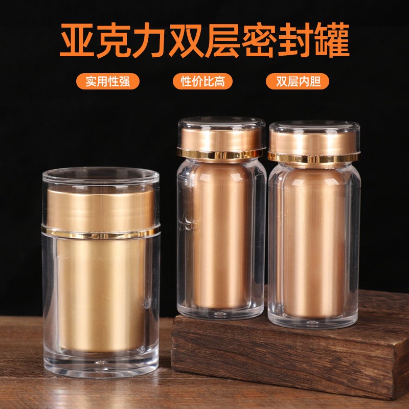 厚みのあるアクリル二重蓋薬瓶カプセル密封ボトルヘルスケア製品プラスチックボトルスポット卸売保存ボトル
