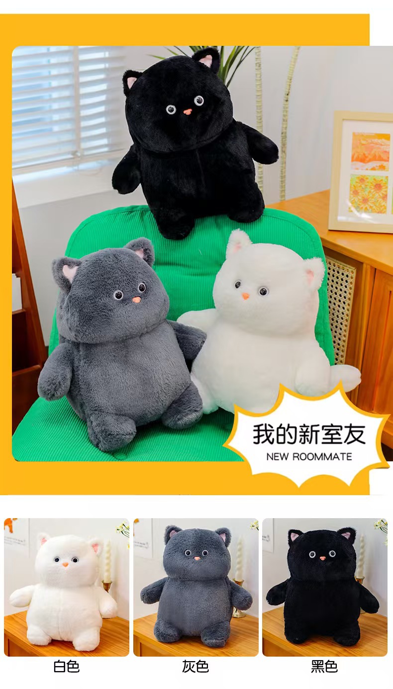 オリジナルのニャンコの太った猫のぬいぐるみが太っている白い猫がかわいいハキミのぬいぐるみ人形