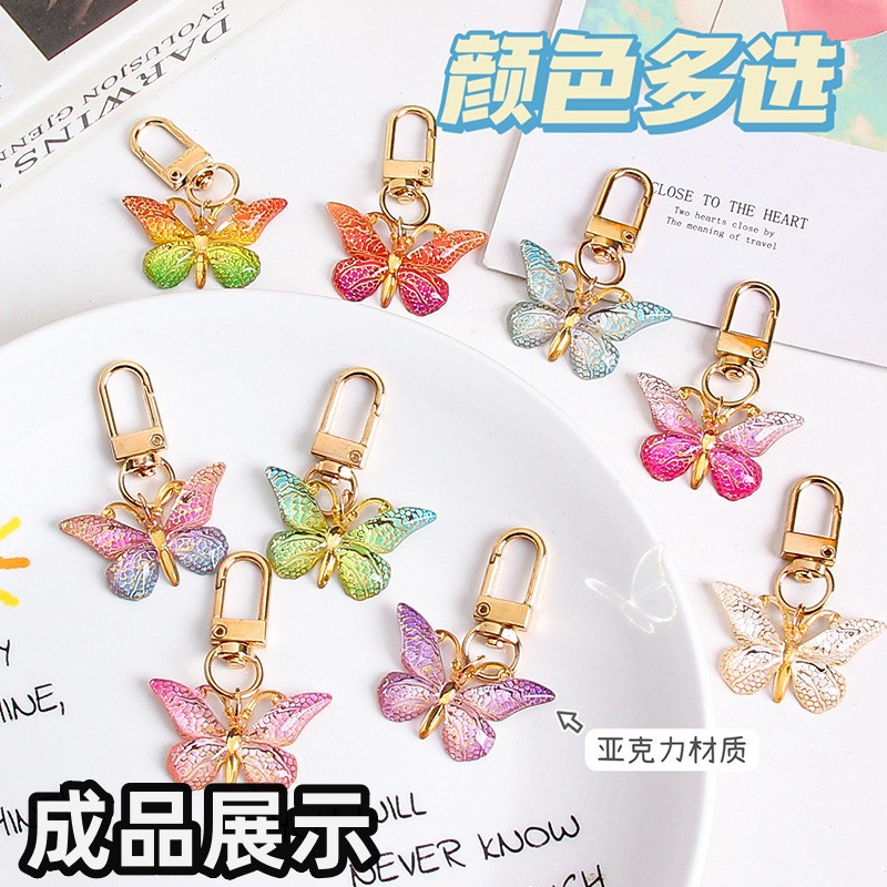 新しいグラデーションカラフルなアクリル蝶クリエイティブパーソナライズされた学生スクールバッグバッグペンダントペンダントカラフルなペンダントアクセサリー