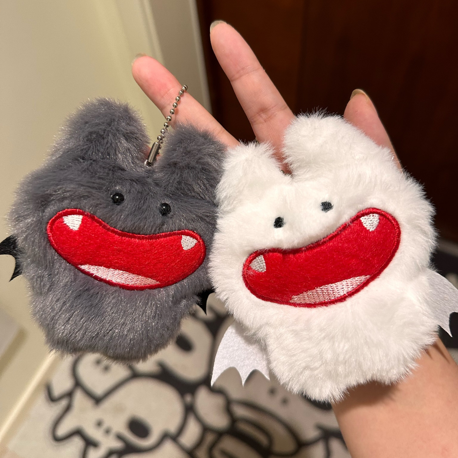 かわいいコウモリのぬいぐるみカップルが学生のかばんに鎖をかけて超萌えキーホルダーをプレゼントして彼女にあげた