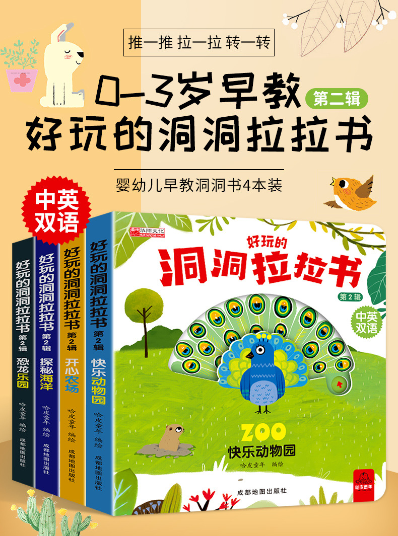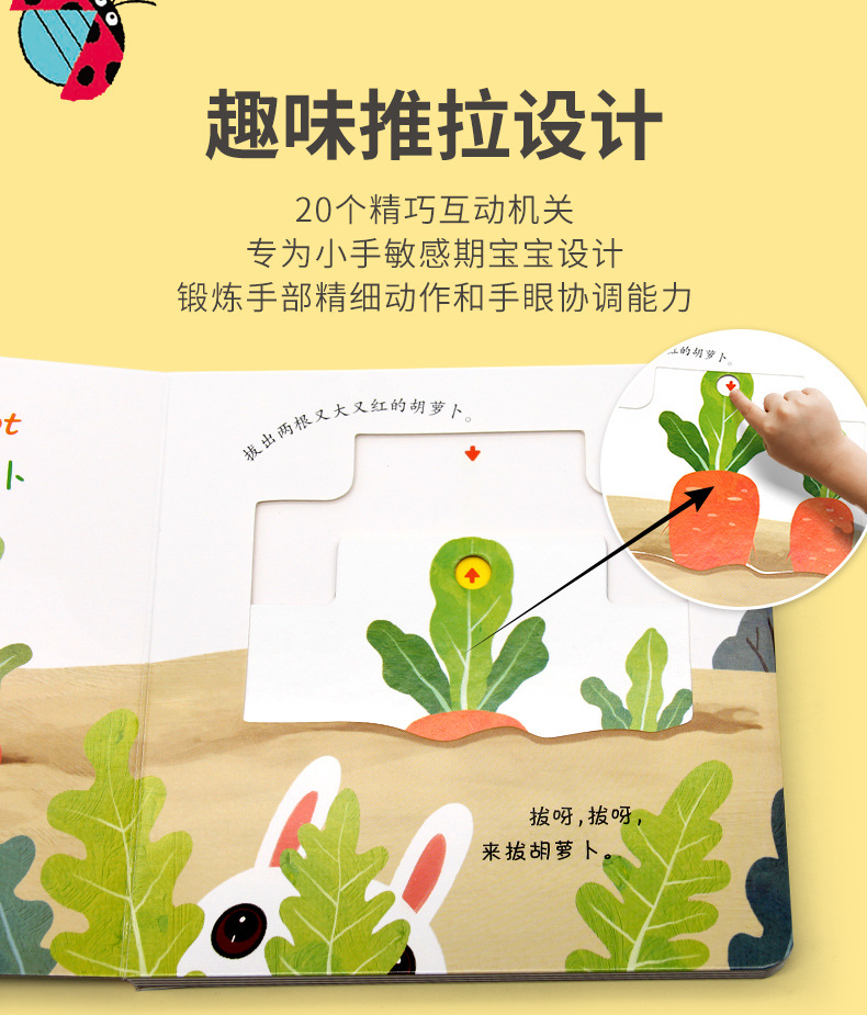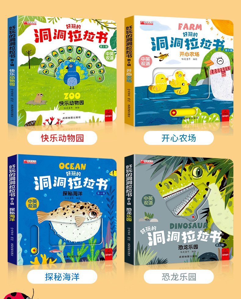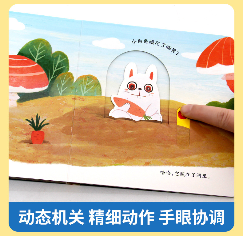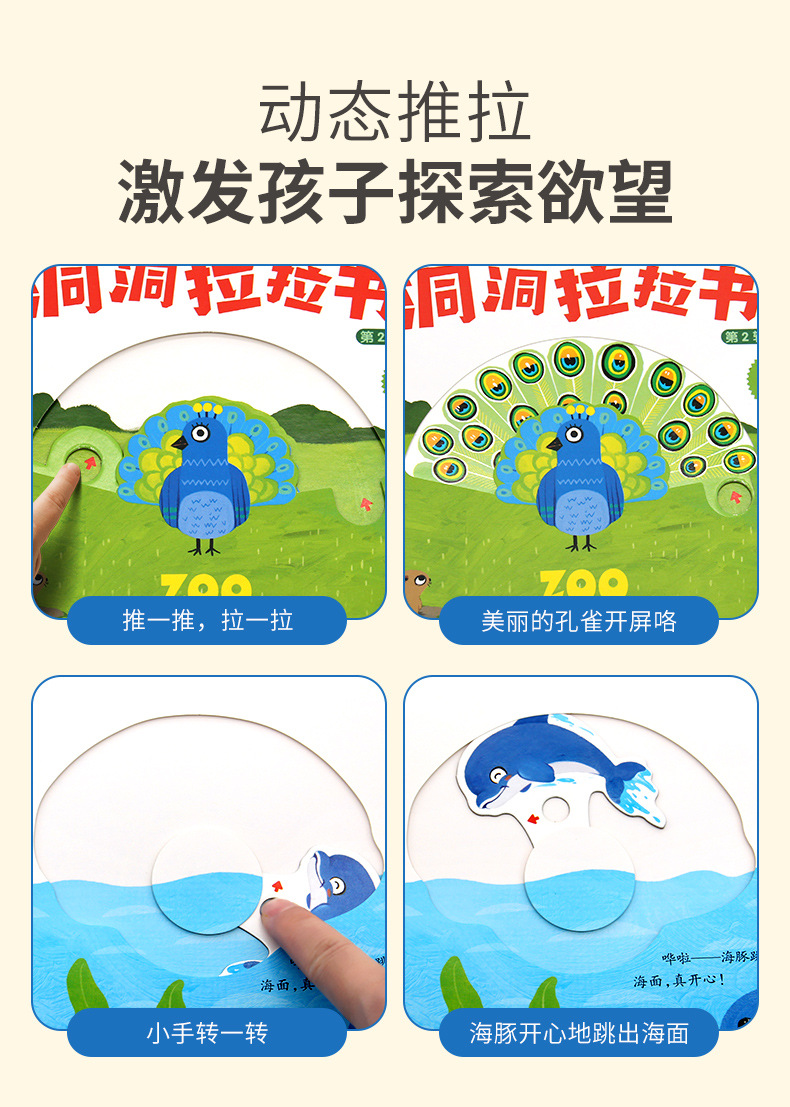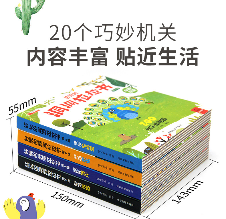 楽しい穴あきプルアンドプッシュ絵本、子供と幼児向けの16巻セット、立体的なプルアンドプッシュ式の楽しい絵本