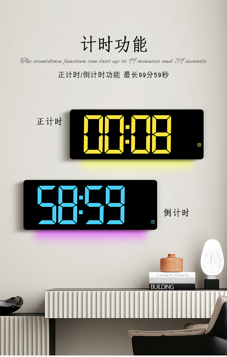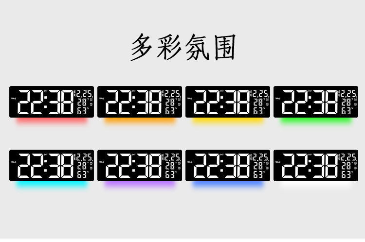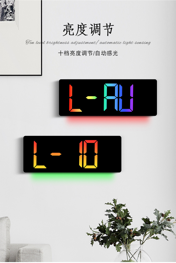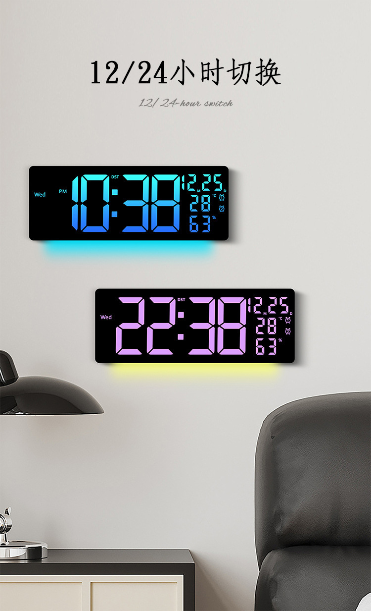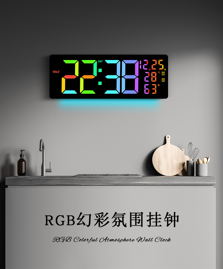 跨境RGB氛围灯大屏电子挂钟北欧数字钟表简约客厅闹钟LED壁挂时钟