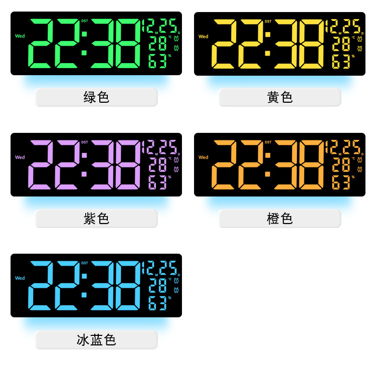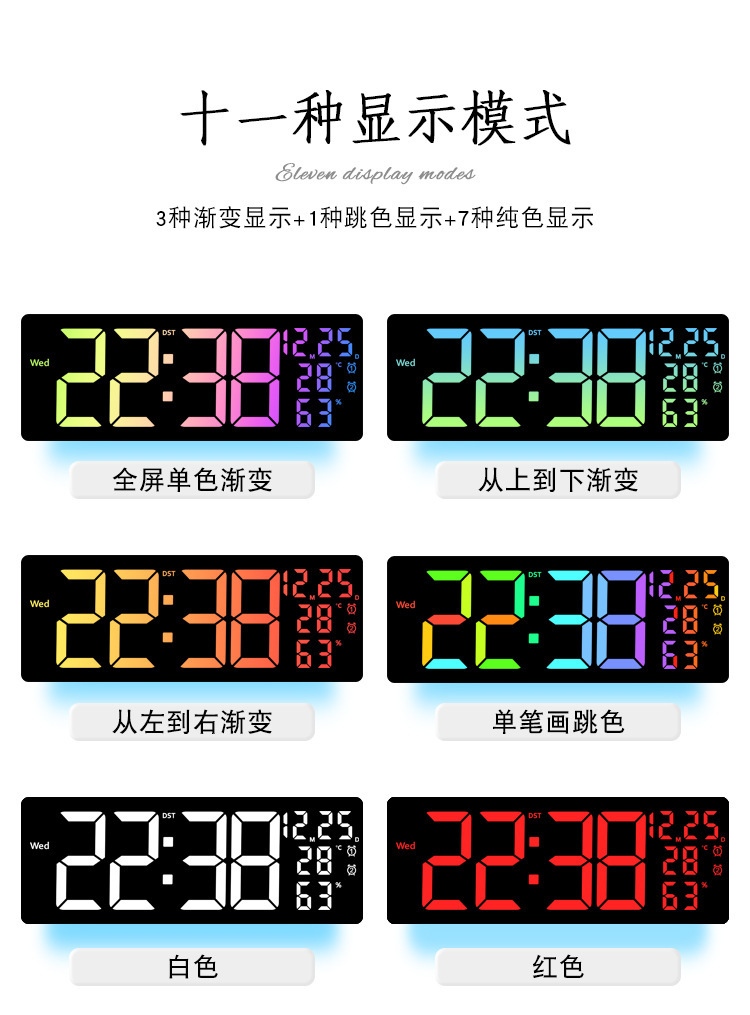 新跨境LED幻彩挂钟RGB变色客厅挂钟显示多功能闹钟大尺寸数字挂钟