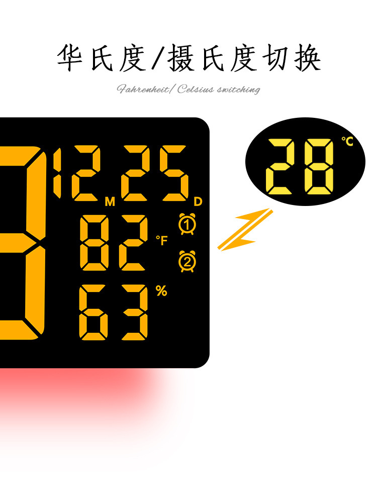 16インチ大画面機能表示時計北欧デジタル時計シンプルリビング掛け時計led壁掛け時計6626