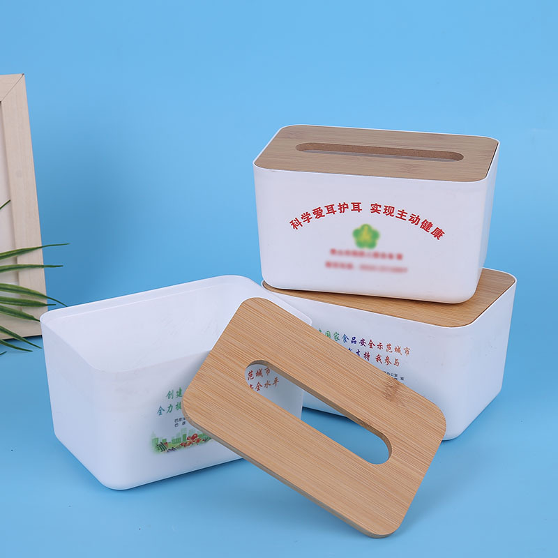 プラスチックティッシュボックスメーカー木製カバーppクリエイティブ広告プロモーションホテルホテルティッシュボックスプリントロゴ