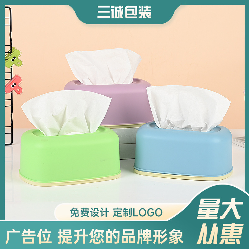 カラフルなクリエイティブティッシュボックス広告カスタムロゴティッシュボックスバスルームリビングルームPPプラスチックティッシュボックス卸売