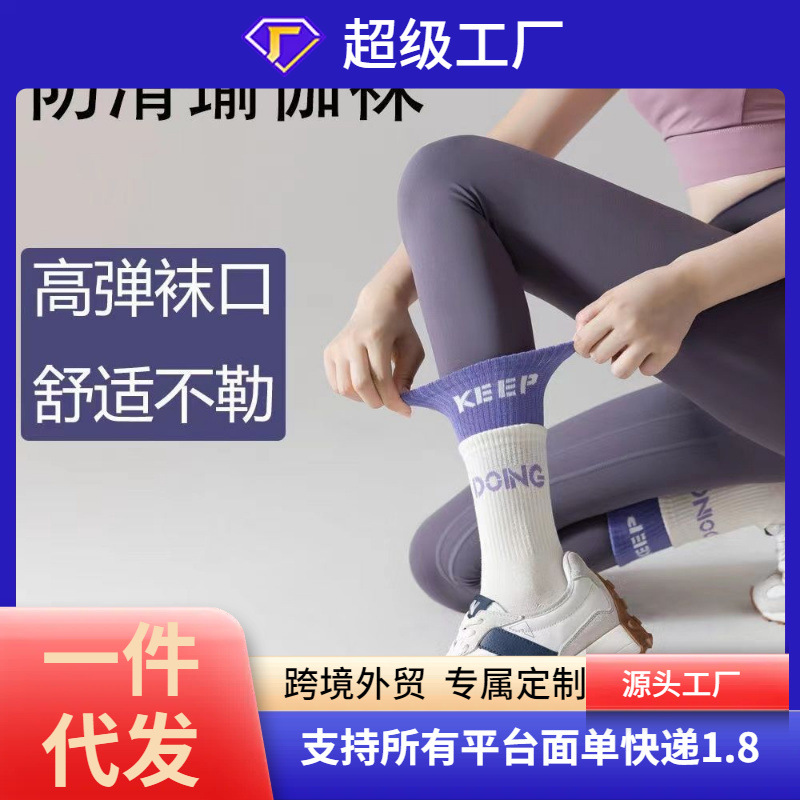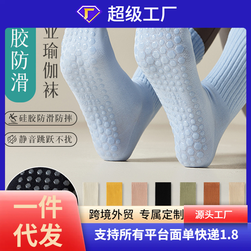 专业防滑运动袜女瑜伽跑步健身多功能中筒纯色地板袜子跨境亚马逊