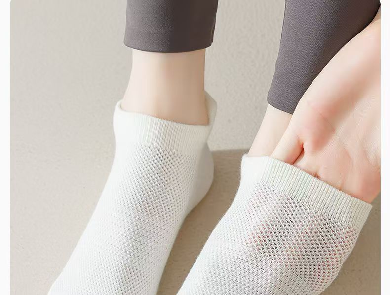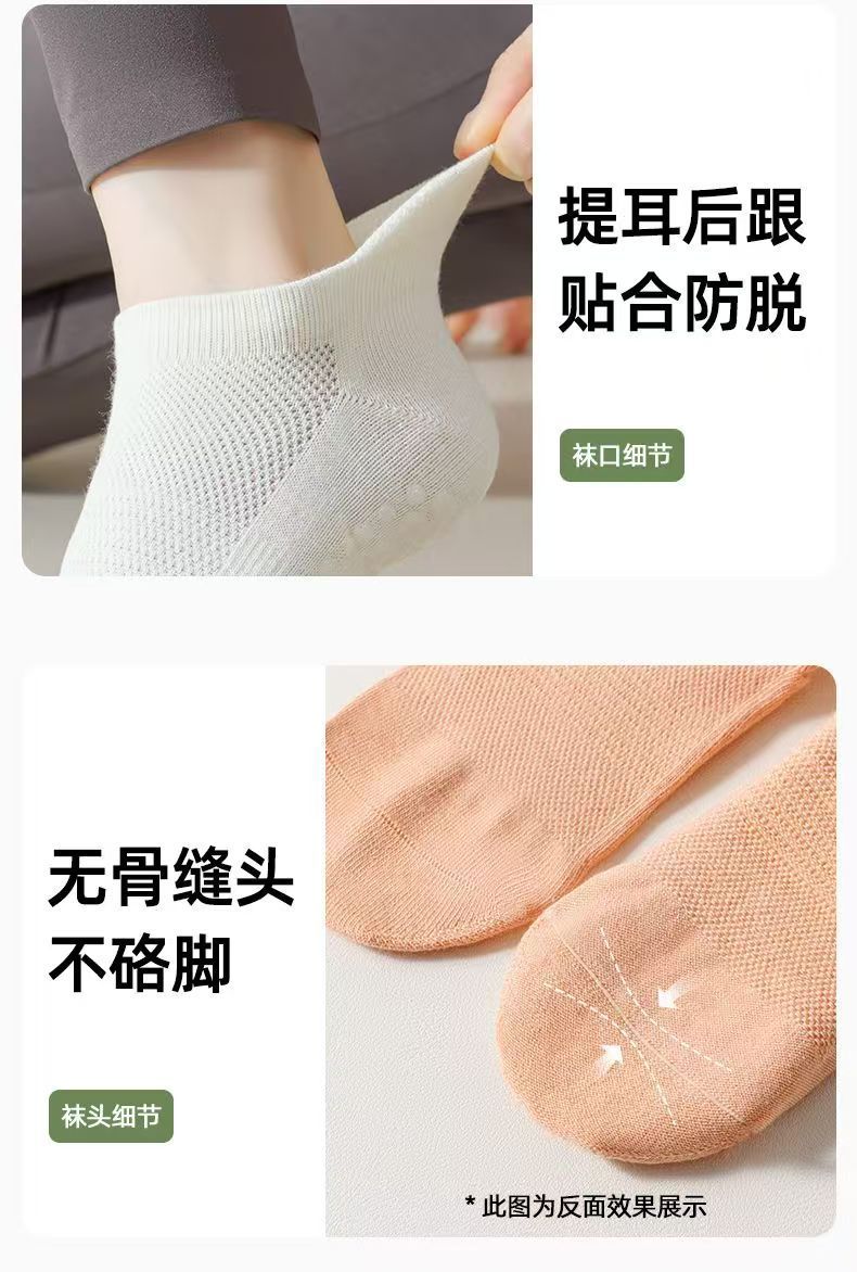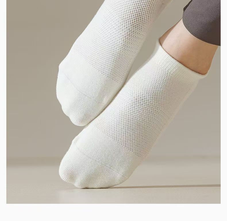 女性用夏用薄いボンレスヨガソックス、無地ショートコットンソックス、メッシュ滑り止めソックス、サメ付きピラティスフィットネスソックス