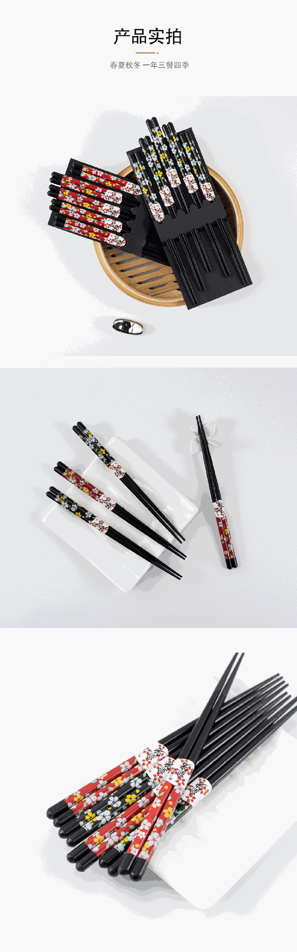 軽奢で高級感のある五膳五架、和風箸、一人一本箸、楽々分食、五色梅の花箸、箸置き