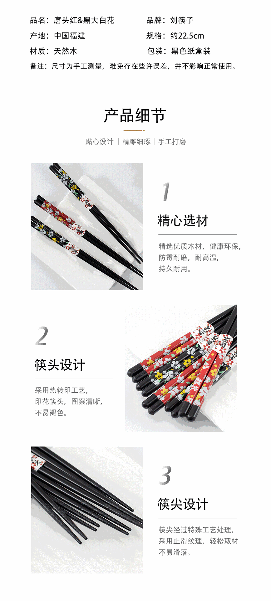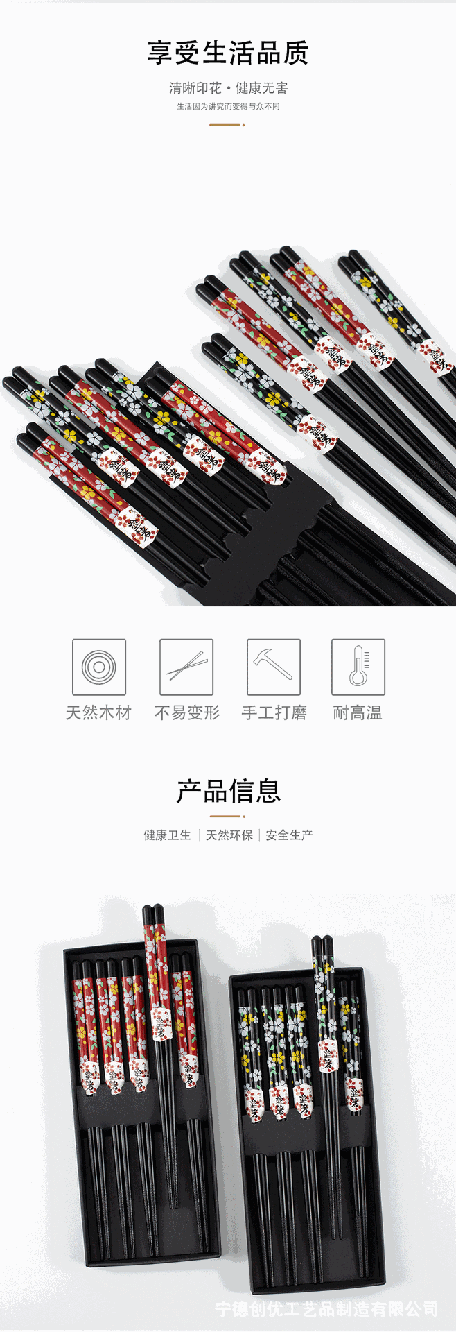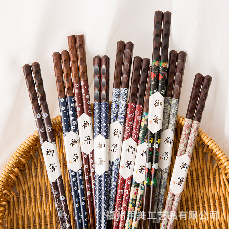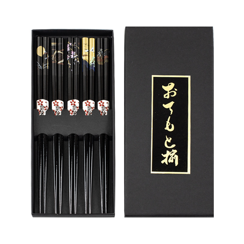 メーカー既製木製箸、日本式、1人1本、健康食事共有、5膳、箱入りギフトボックス、木製箸