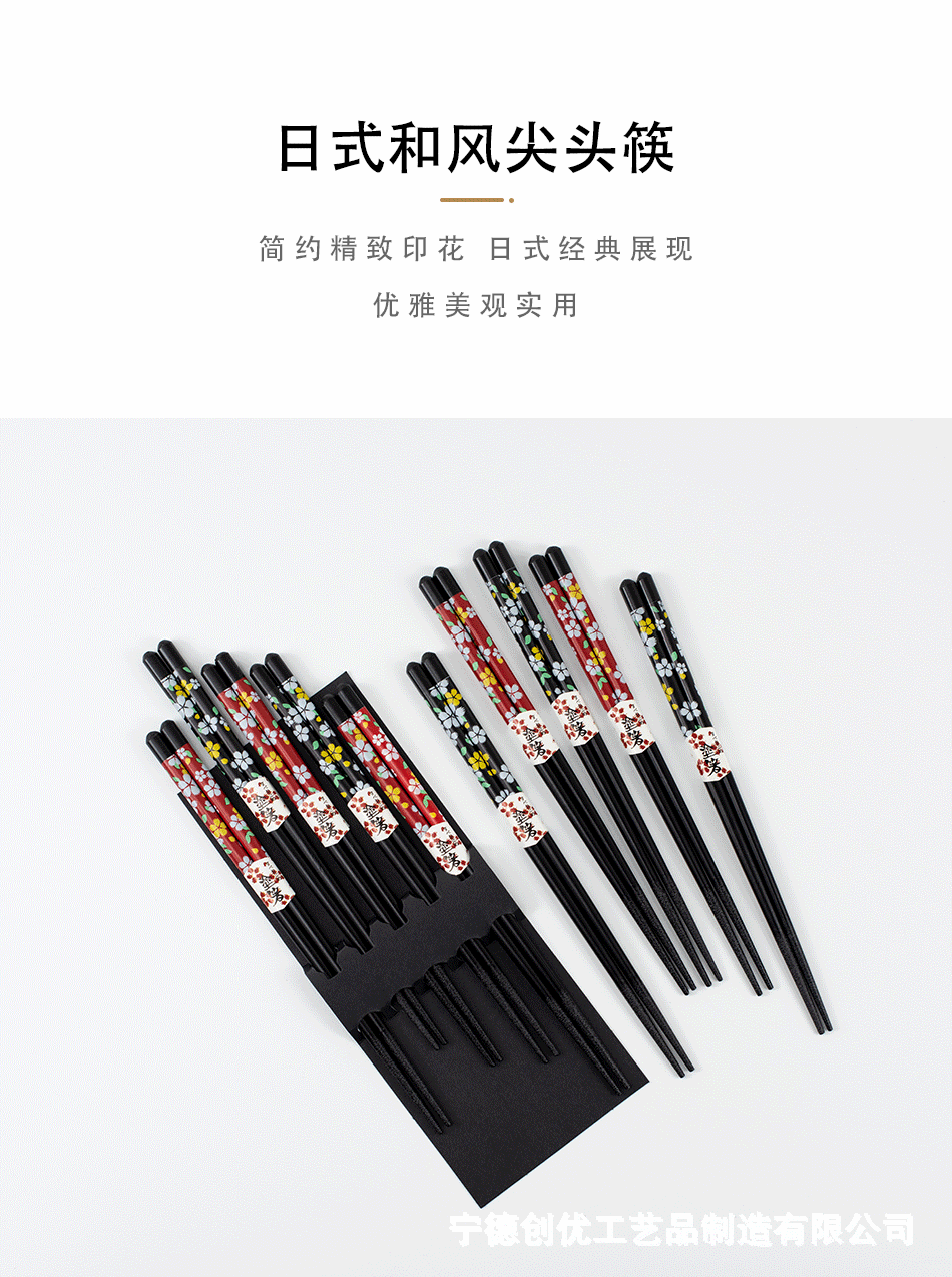 シングル独立包装軽豪華高級感五色飛花滑り止め箸日本式尖頭メーカー直販滑り止め箸