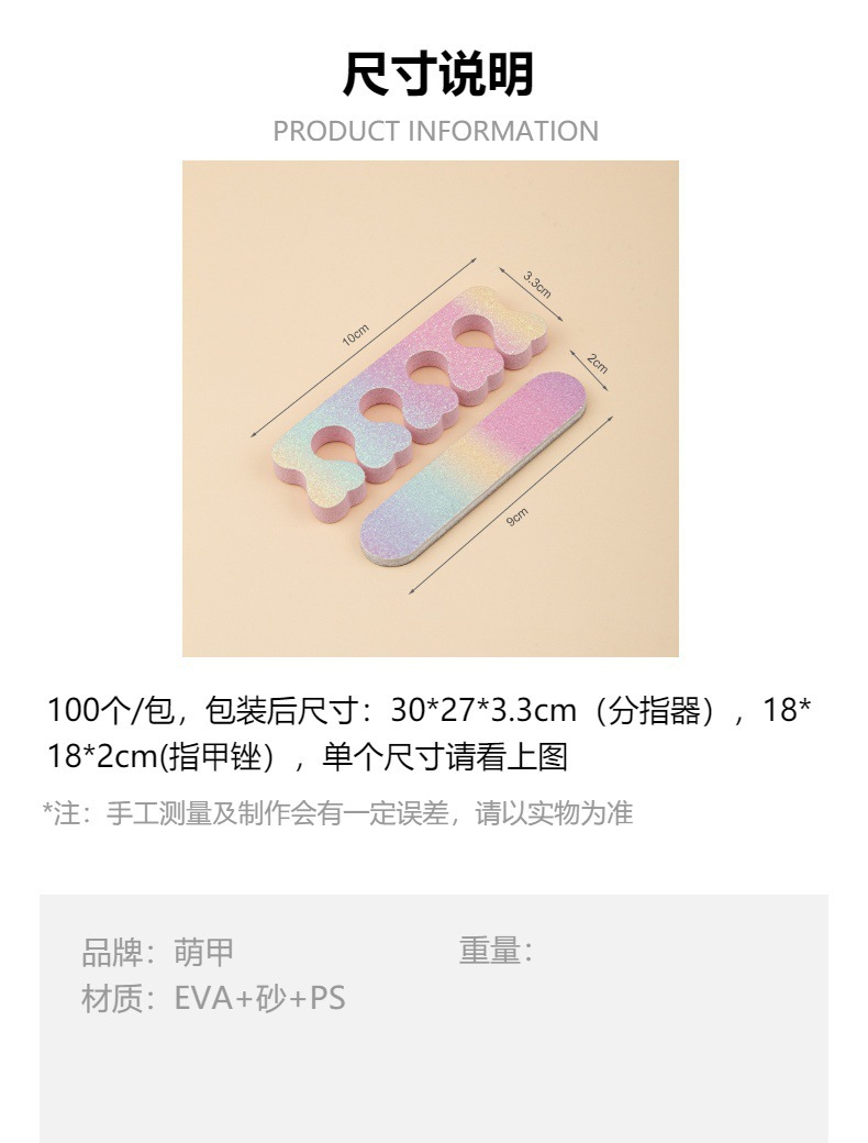 レインボートゥセパレーター爪やすり子供用マニキュアセットアクセサリーEVAトゥセパレーター綿サンドストリップ研磨と研磨マニキュア