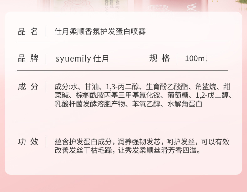 製品1 syuemily シュユエ スムース フレグランス ヘアケア プロテイン スプレー 100ml