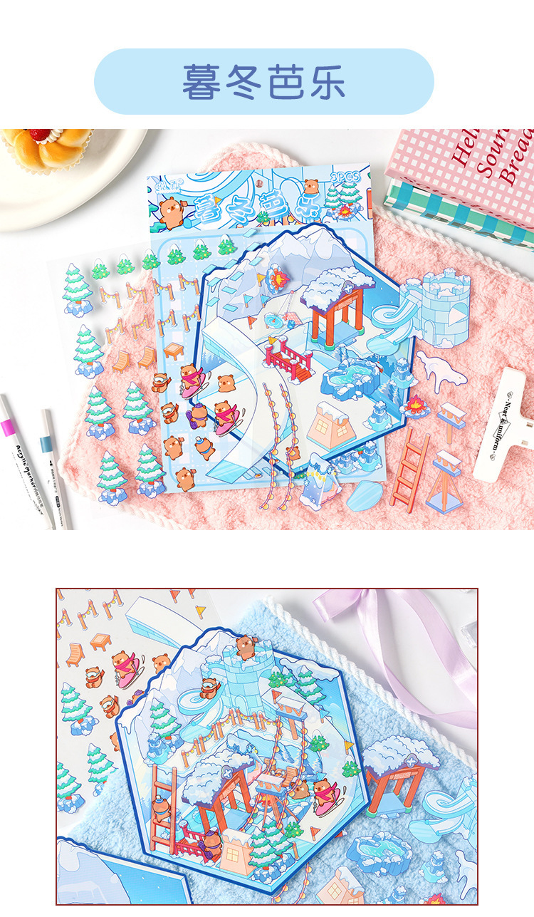 Yuezhen Four Seasons はあなたに大きなシーン 3D 風景ステッカークロスボーダーミニチュアシーンステッカーコテージ立体ステッカーを与えます