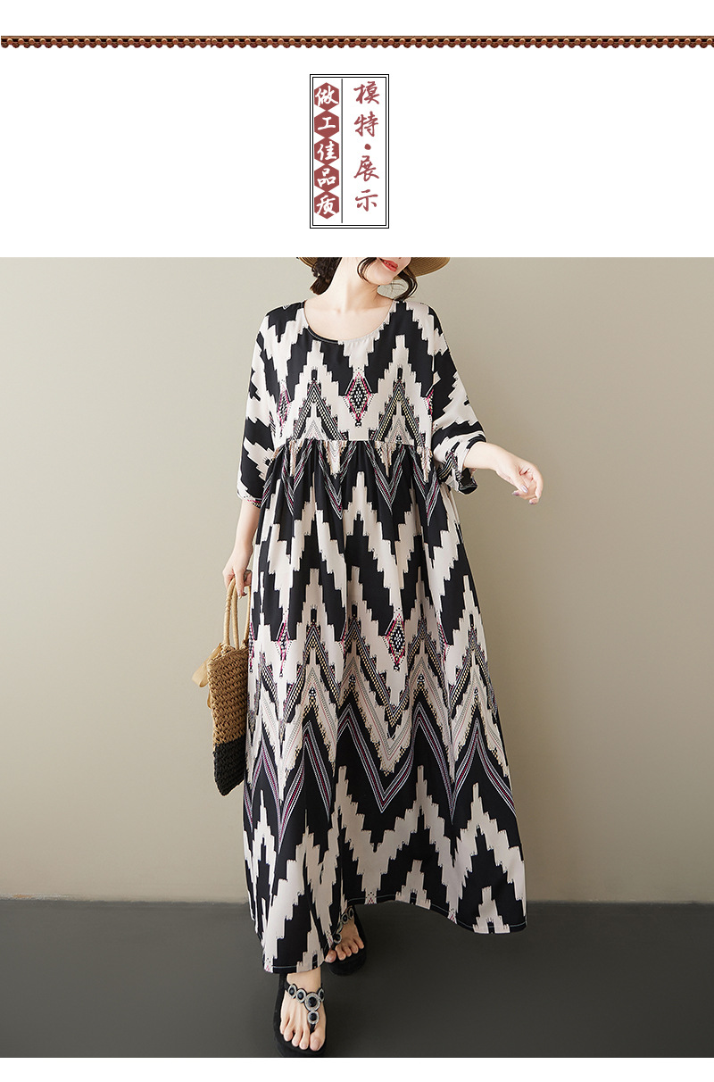 夏の新型ワンピース2025円襟半袖ゆったりとしたカジュアルな休暇波縞の中高年対外貿易スカート