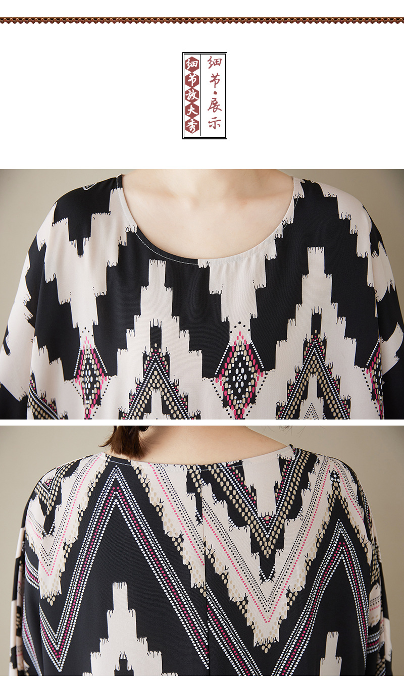 2025秋季新款圆领长袖宽松大摆印花连衣裙 中老年妈妈装外贸裙女