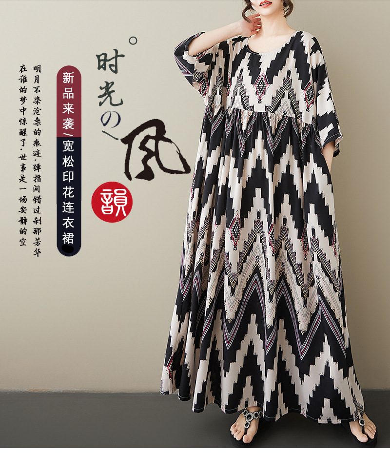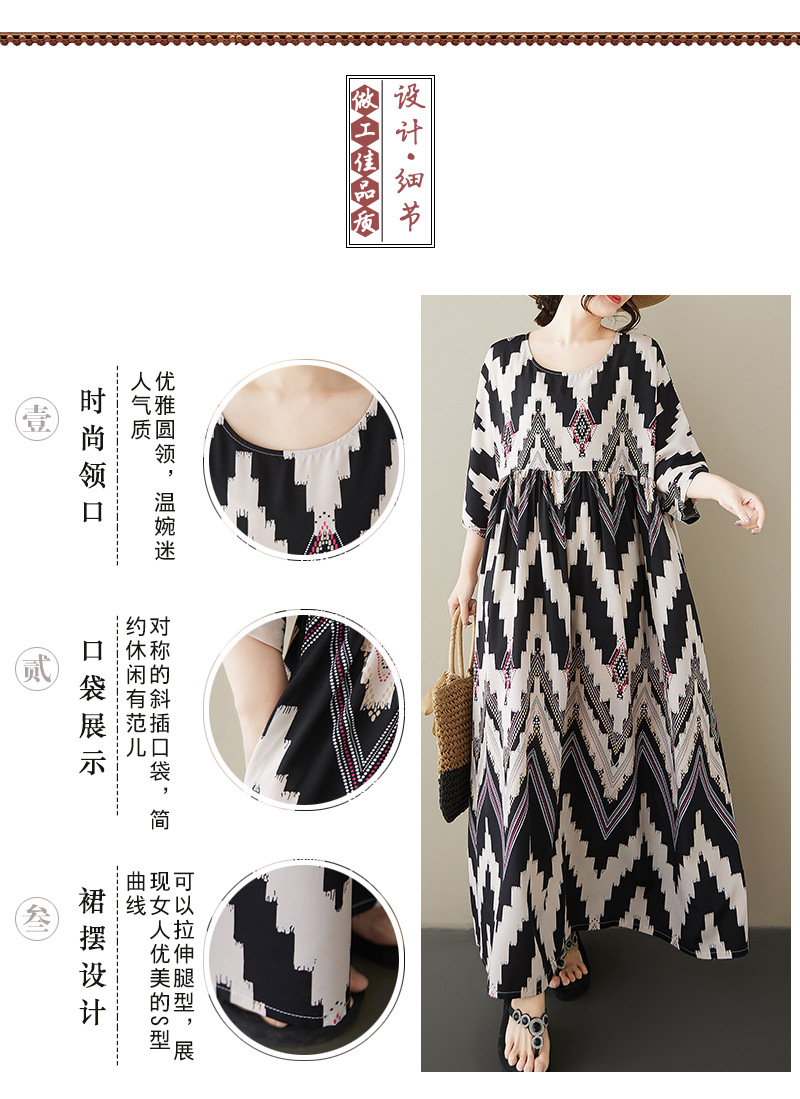 国境を越えた対外貿易の新型文芸はゆったりしていてやせている気質の中で長いサイズの丸首の半袖のワンピースの大きいサイズのスカートを現します。