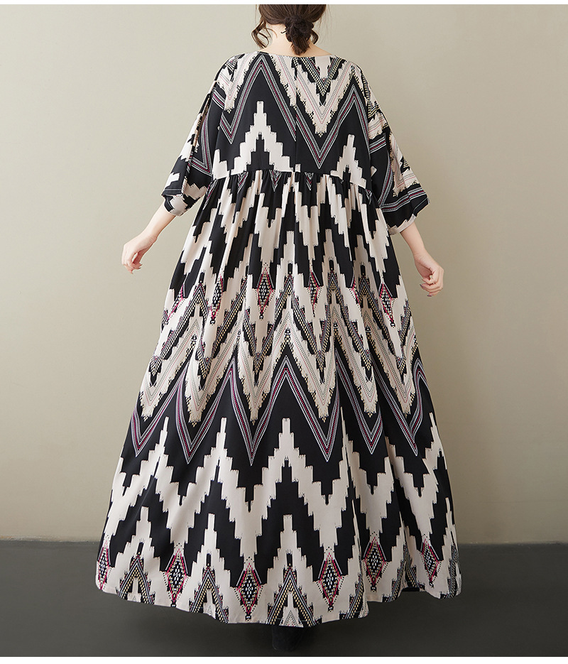 外贸大码连衣裙300斤复古百搭数码印花加厚长裙棉麻长袖连衣裙