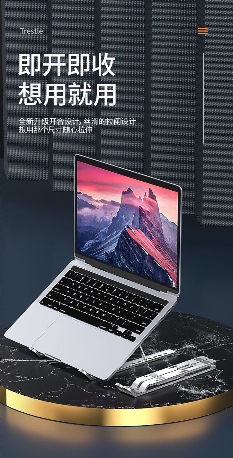笔记本支架铝合金三叉加宽折叠散热升降底座平板电脑增高支架批发