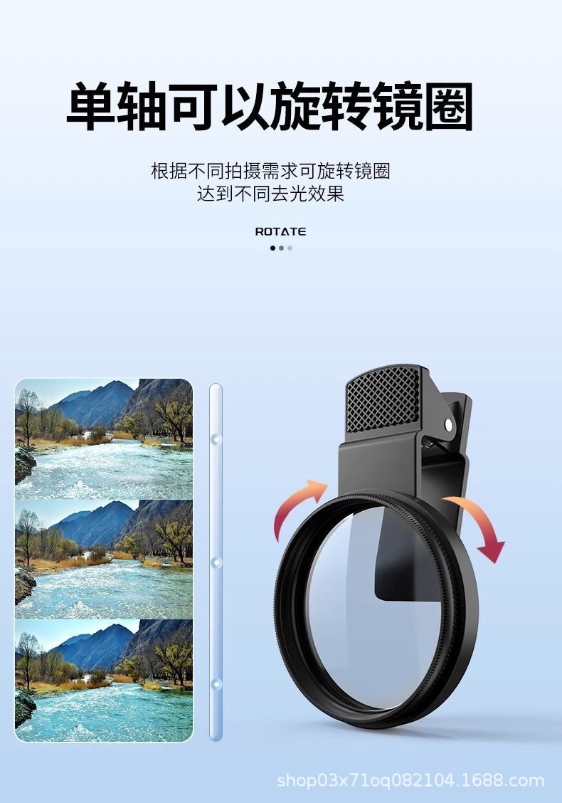 スポット52mm携帯電話撮影偏光子レンズフィルタークリップ付きCPL偏光レンズ反射除去hdフィルター