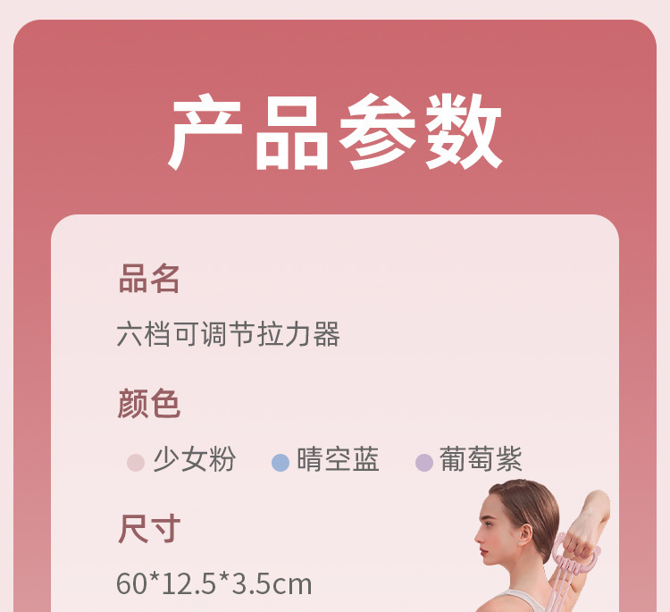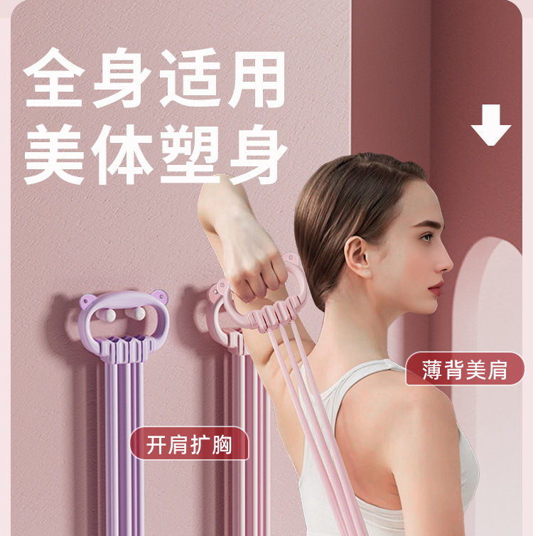 6管猫耳拉力器美背フィットネス弾力ロープ開肩練習調整ポンド数6株家庭用8字引き帯