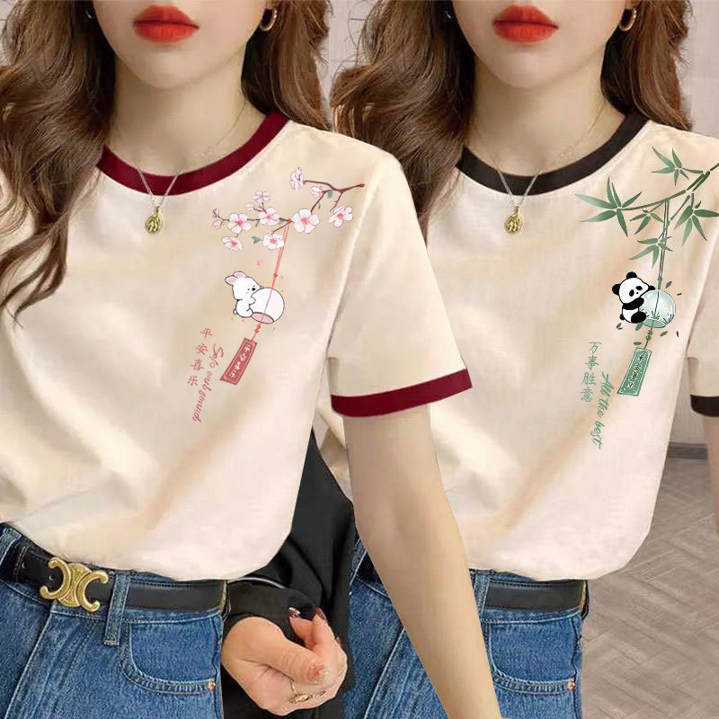 シングル/ツーピースの新しい中国風半袖夏コントラストカラーステッチ半袖国民風多用途痩身Tシャツトップルーズ
