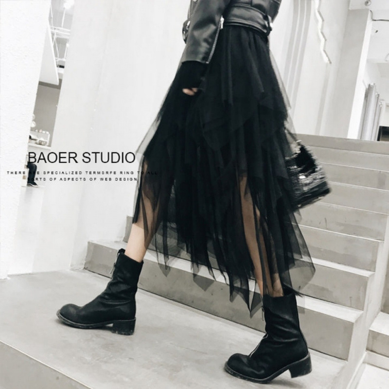 新商品の高級網紗仙の不規則な半身のスカートの女性の中で長いタイプの高腰の修身の街はやせている秋冬を現します。