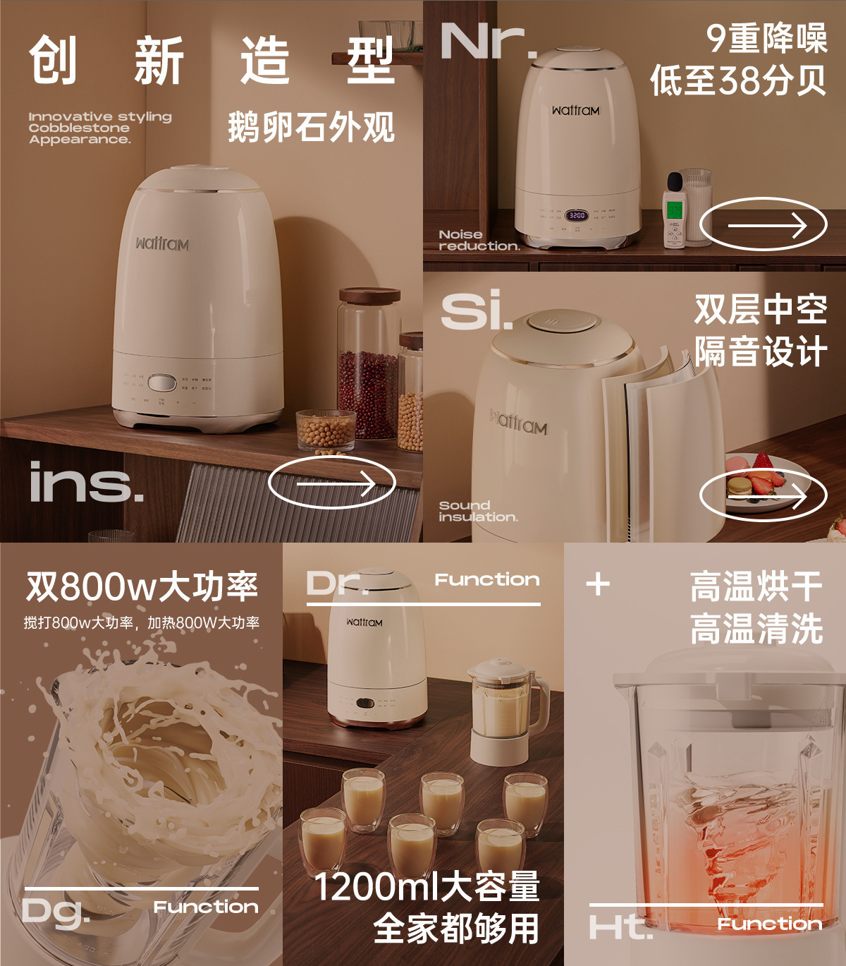 北欧ウォラン小石壁破壊機家庭用全自動新しい静音低ノイズ小型調理ジュース豆乳 M2