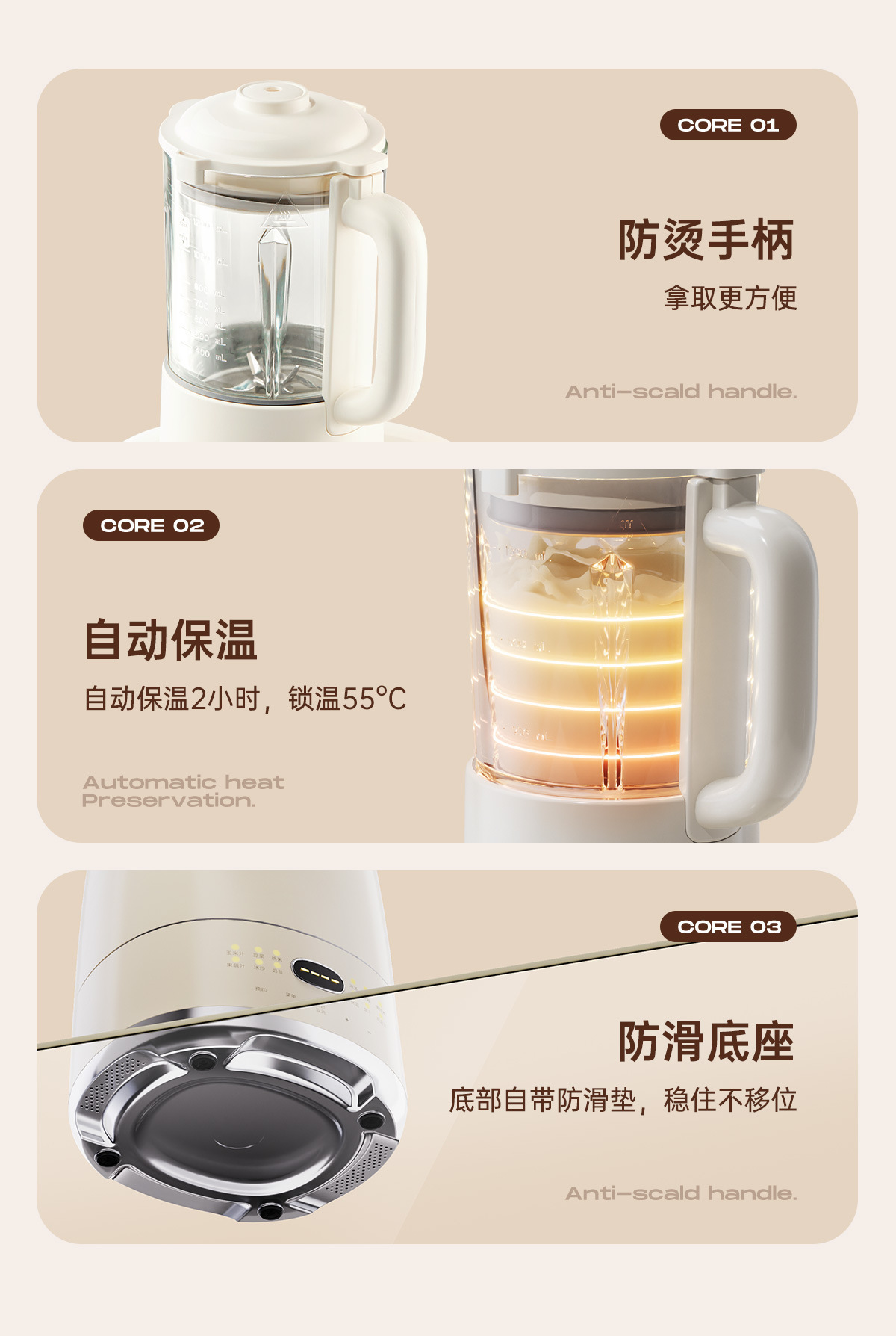ブルーバオ壁破壊豆乳マシン 1-3 ソフトサウンドミストスチーム壁破壊機全自動加熱非サイレント豆乳マシン
