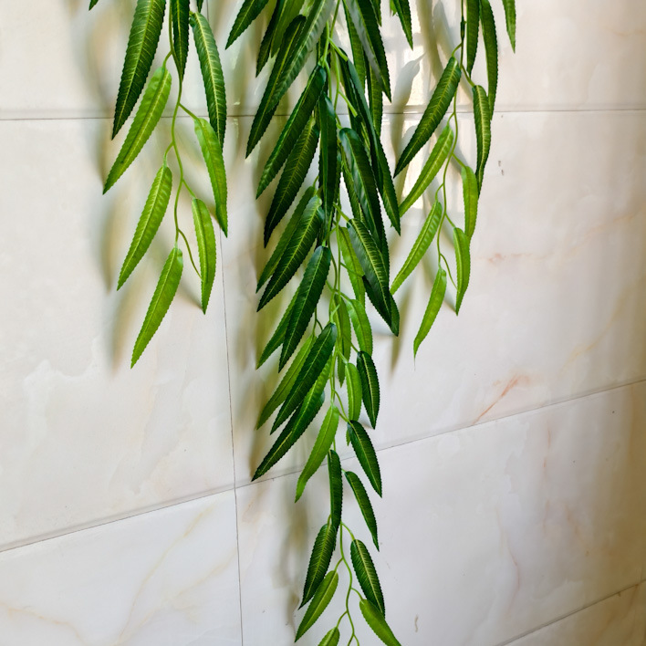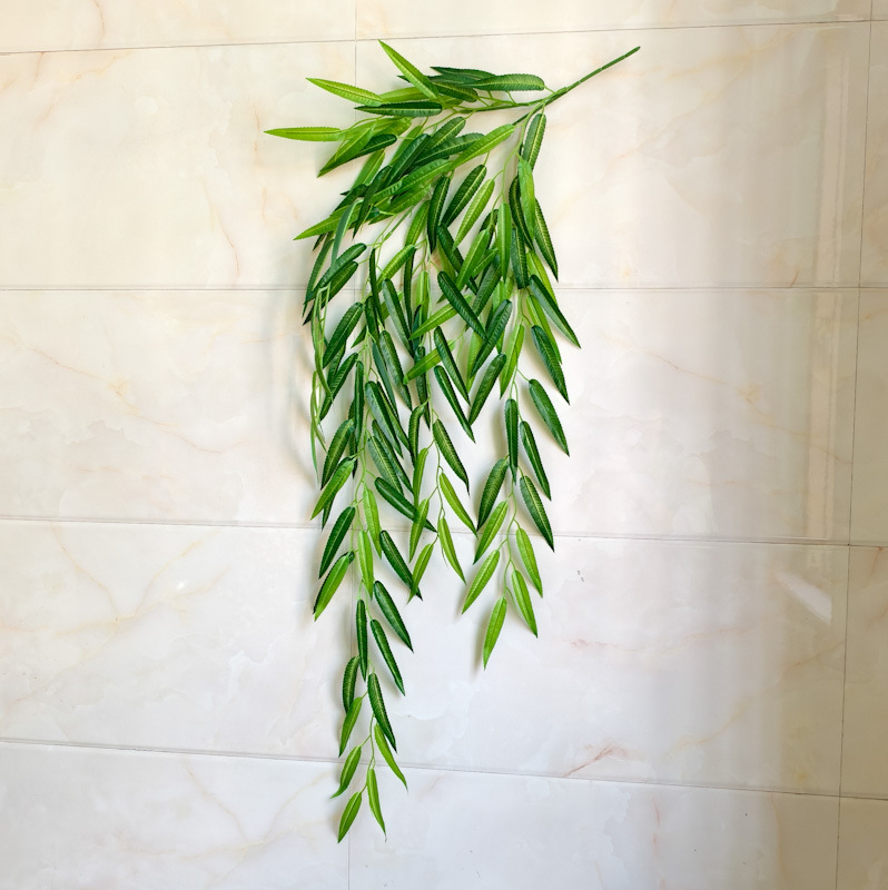 シングル模擬柳の葉、偽柳の枝、偽緑植物、吊り蘭の装飾、プラスチックの偽の葉、柳の緑の葉