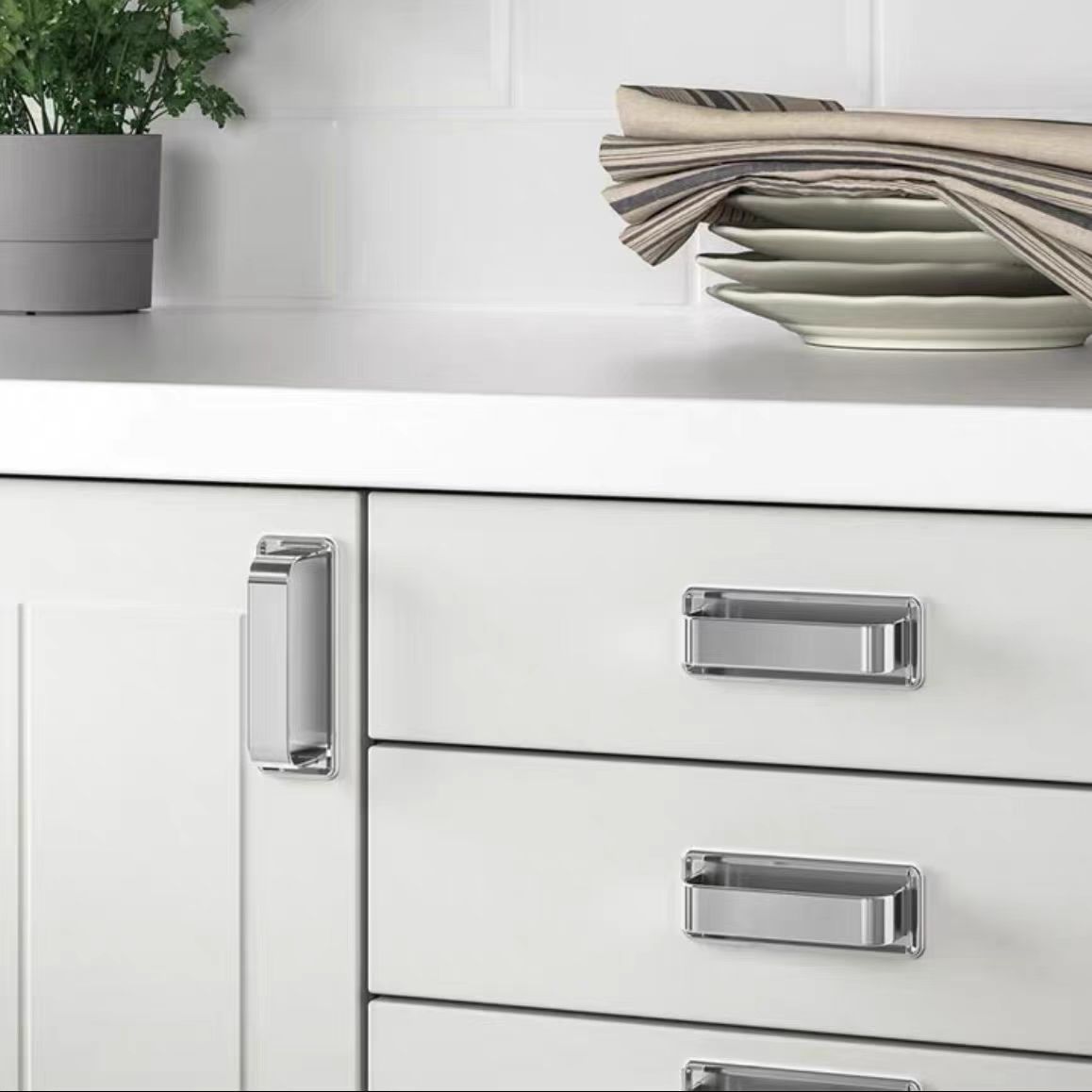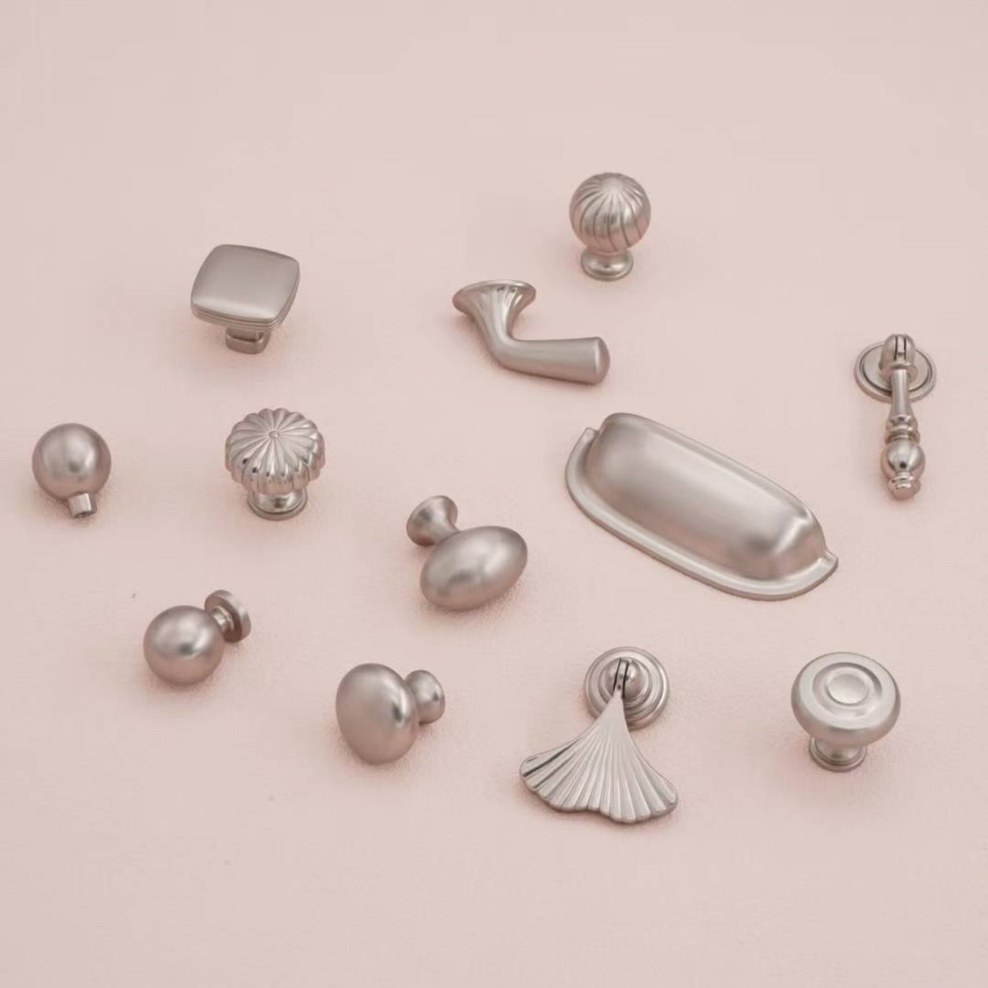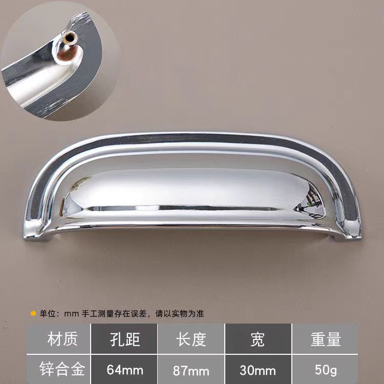 美式风格银色高端门把手现代简约轻奢抽屉衣柜鞋柜橱柜家具小拉手
