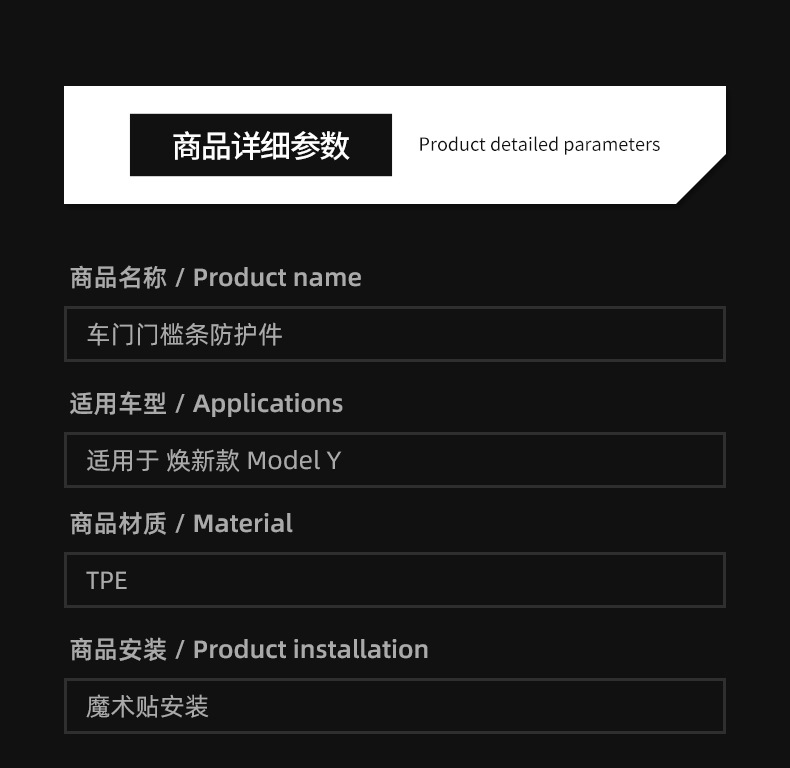 25種類のテスラ新型Model Yに適しており、中央制御装置の両側にアンチキック保護パッド、保護パッド、ドアシルストリップ、ガードプレートが付いています。