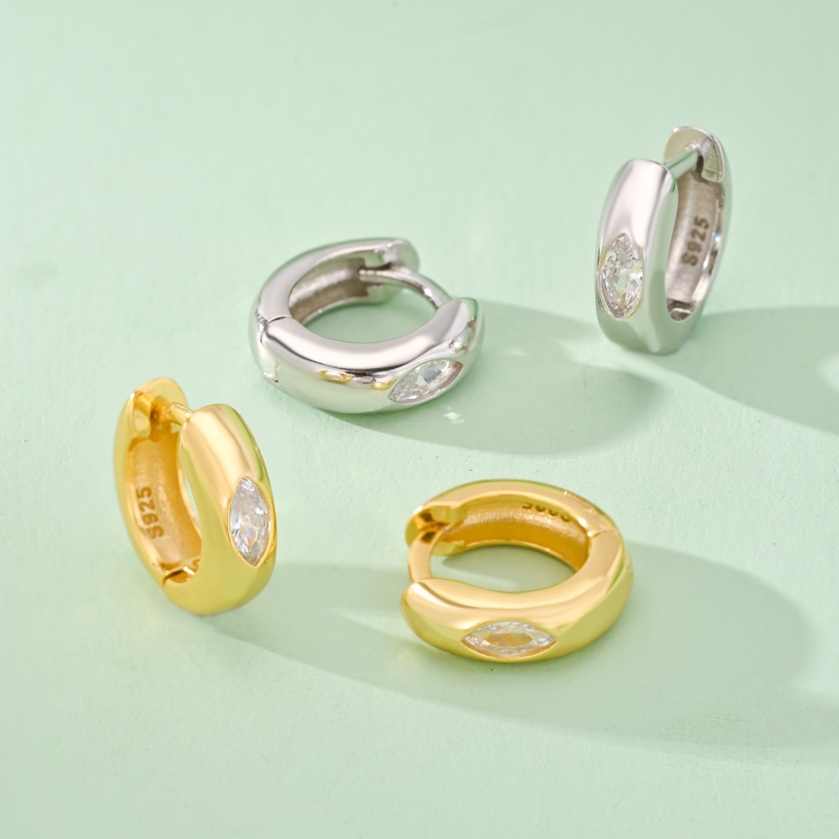 YHE0165 欧美轻奢S925纯银INS风极简几何菱形镶钻耳圈耳扣银耳饰