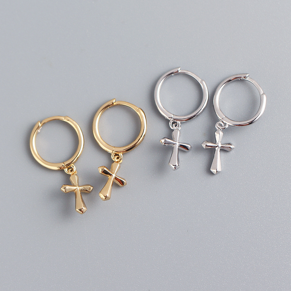 クロスボーダー独立ステーション S925 スターリングシルバー INS ミニマリスト ボディクロス 小さなイヤリング イヤーバックル イヤースタッド