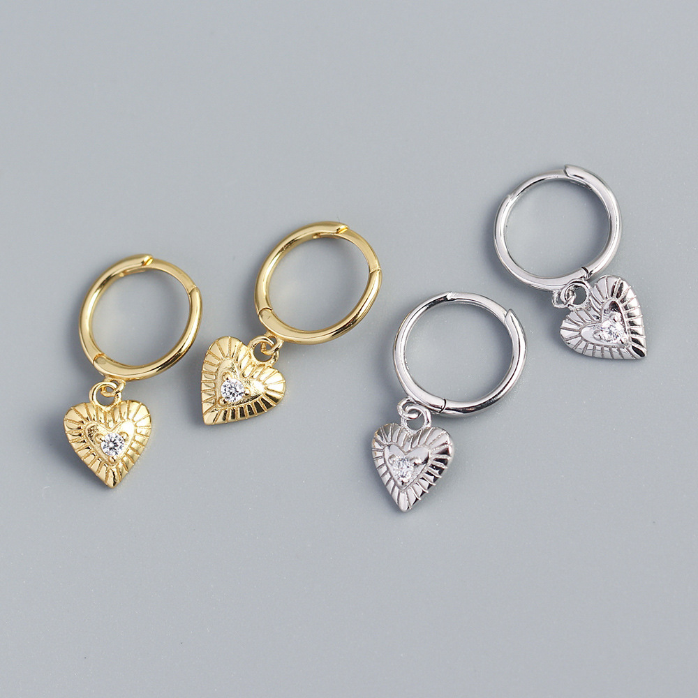 欧美跨境轻奢风s925银ins金属风复古心型镶钻耳扣耳钉女