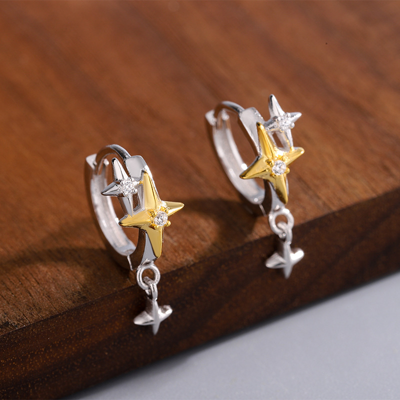 S925 スターリングシルバーイヤリング女性のスターリングシルバー耳骨ネイル耳ピアスニッチデザイン八芒星甘くてクールなイヤリングイヤリング