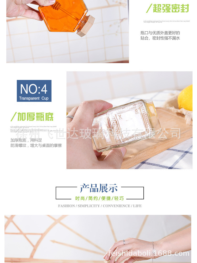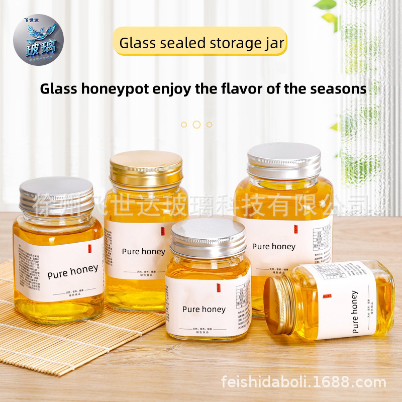 国境を越えたアマゾン透明ガラスアルミ蓋角型蜂蜜瓶家庭用ジャム瓶ビワペースト貯蔵密封缶